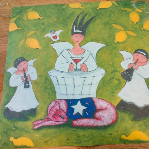 Selger en nydelig bildevev, ganske sikker på at det er ull. Ingen lukt eller skader.