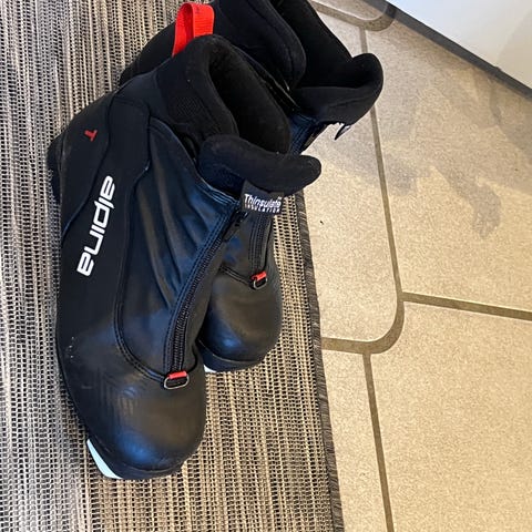 Alpina combi training skisko junior til NNN binding. Skoene er i størrelse 38, men er små i størrelsen. Innersålen måler 23,5 cm som tilsvarer en 37 størrelse. Selges til 450kr.