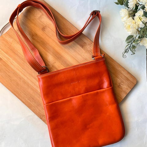 H&M skulderveske for dame, laget av kunstlær. Vesken har en brun farge med detaljer i slangeskinnmønster. Designet med klaff og justerbar skulderrem.