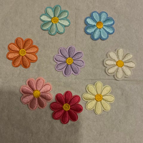 Fint Sy Stryke Stickers / Patch Stickers (Blomester)(12 farger), Prisen:15,- Per Stk.