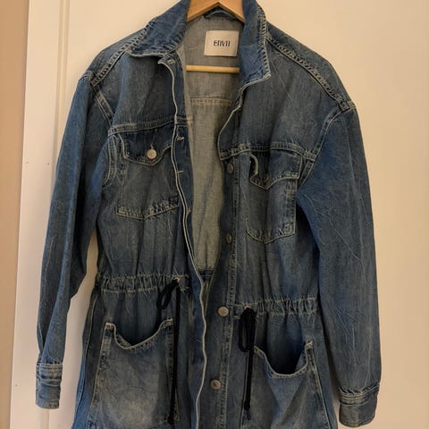 Selected Femme Denim jakke, størrelse 40. Jeg kjøpte nettopp jakken på Finn, men den er dessverre for oversized for meg, spesielt i ermene. Selger derfor videre. Passer sikkert en strl. 42 òg.
