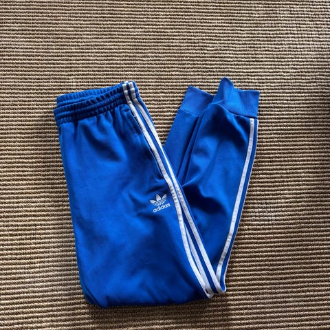 En fin blå Adidas trening bukse til salg. Kan brukes for trening.