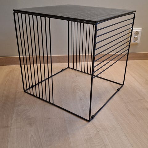 Hylle fra Kremmerhuset med sortlakkert metall. Liten skade bak på øvre venstre hjørne. Må hentes. Fin som avlastningsbord/konsoll i stue, gang eller soverom.