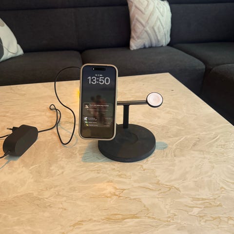 Selger en brukt lader fra Belkin i fargen hvit. Er typ en iPhone lader.