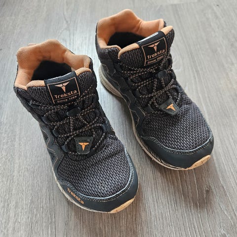 Veldig lite brukte tur / fjellsko. Selv om lite brukt ble de desverre skrapt på en fjelltur. Har hatt dem i flere str og barnet har vært fornøyd med skoen på tur.
