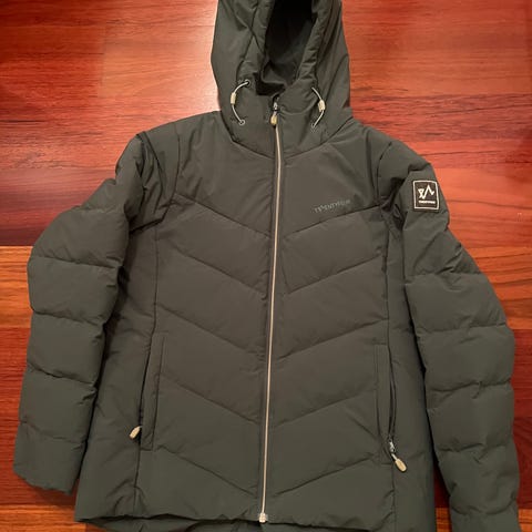Twentyfour Annet yttertøy i dun, størrelse 38 for damer. Jakken er rustrød og har fyll av dun som gir isolasjon. Materialet består av 100% polyester med dunfyll for varme. Designet for utendørs bruk.