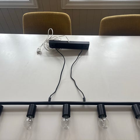 Gir fint lysspill og passer godt i stue, over spisebord eller i gang. Pent brukt og i god stand. Enkel å montere.