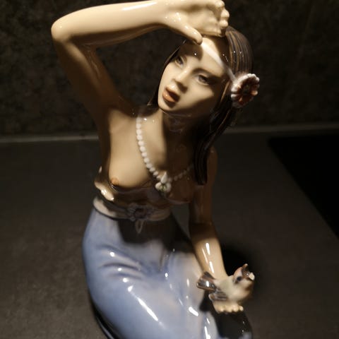 Flott Tysk Vintage punsj bolle uten skader selges, sannsynligvis i keramikk eller steintøy, med dekorative utskjæringer av druer blader. Og sittende figur på lokket! Må hentes.
