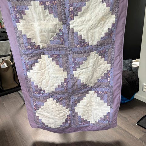 Lappeteppet som er 160 x 130 cm. Det har ikke vært brukt på mange år. Usikker på om det har vært vasket. Selges for 800,-