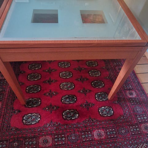 Farge: Kirsebær (men det er områder der bordet er bleket av sola).