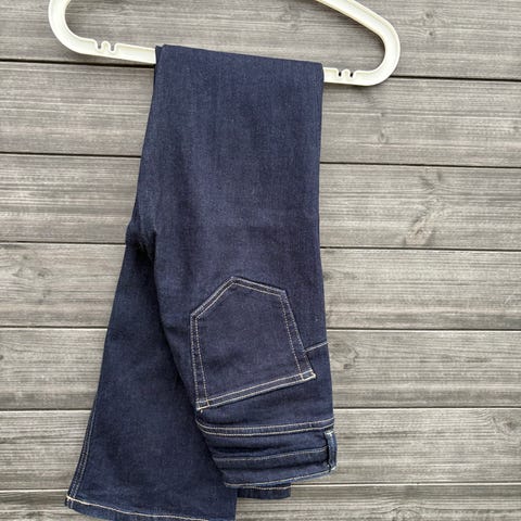 Selger en jeans fra KAFFE i str 46. Kun brukt ett par ganger. Vasket én gang. Veldig god myk denim med mye stretch. Rette ben. Lengde innside ben ca 76 cm. Lengde utside ben ca 110 cm. Bredde øverst ca 45 cm. Litt stor i størrelsen. Normalhøyt liv. Jeg har mange plagg fra KAFFE og er veldig fornøyd med merket. Ny pris ca 900 kroner.