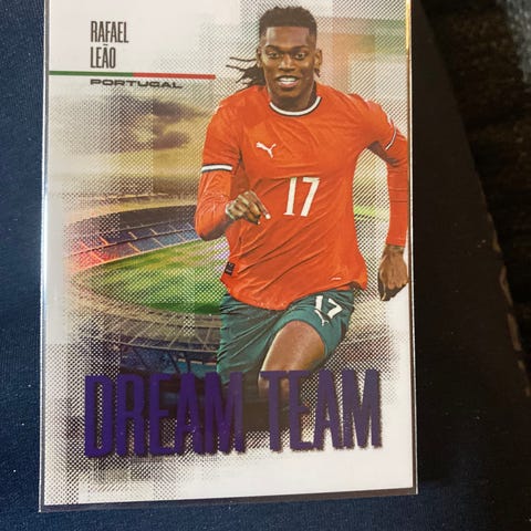 Donruss William Saliba fotballkort med bilde av spilleren i Frankrikes landslagsdrakt. Kortet har holografisk effekt og viser spillerens navn og nummer 17. Kortet inkluderer informasjon om spilleren og hans rolle i laget.