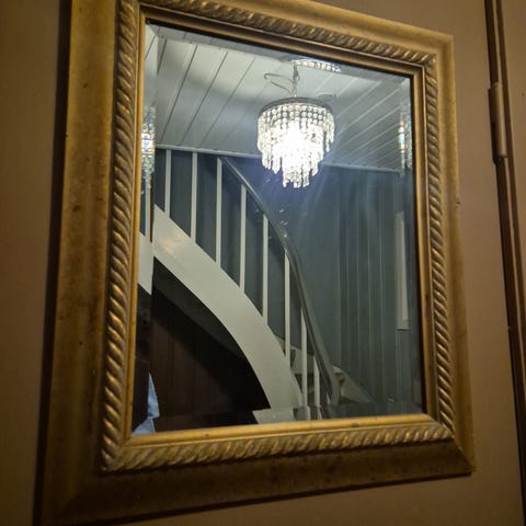 Speilet har to sider hvor det ene er en forstørrelse. Speilet er 26cm høyt og selve speilet har en diameter på 14cm.