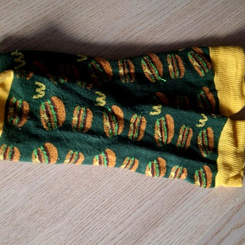 NYE sokker fra MCDonalds. Str 42-45. Bilder av hamburgere.