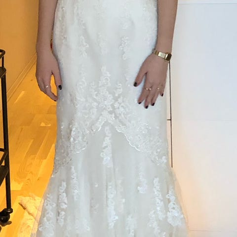 Nydelig brudekjole av merket Pronovias, kun brukt en gang. Ingen skader eller merker. Den er ferdig renset, og størrelsen er 38.