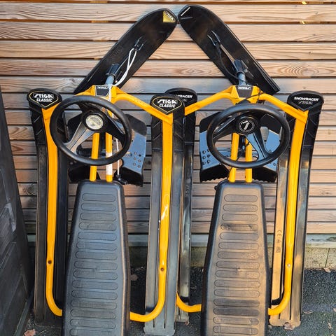 2 stk Stiga snowracere. En gul og en rød. Hele,men brukt. 100 kr pr stk
