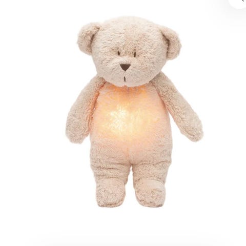 Bamsen har beroligende lyder som white noise og hjerteslag, samt mykt lys som gir trygghet ved leggetid.