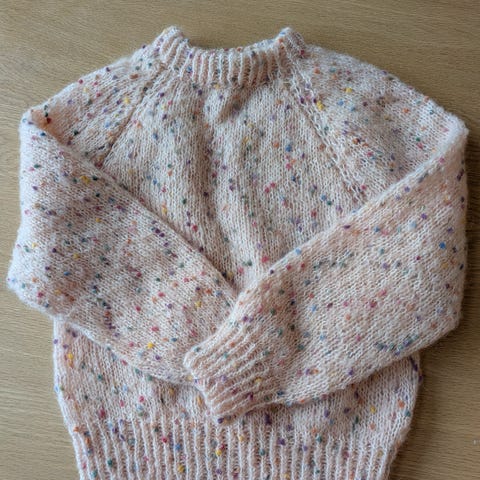 Fint brukt hjemmestrikket genser med multipopcorn garn str 110/116 ?