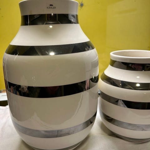 Kähler lysestake laget i keramikk med en kombinasjon av hvit og grønn glasur. Designet for å holde tynne lys og egnet som dekorasjon i hjemmet.