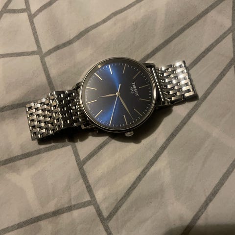 Tissot herreklokke med skinnrem og sølvfarget urskive