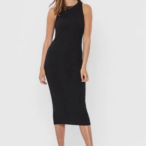 ONLY Hverdagskjole i svart farge, størrelse M. Kjolen har en enkel og tidløs design med peplum-detalj rundt midjen. Egnet for hverdagsbruk/ eller pen bruk