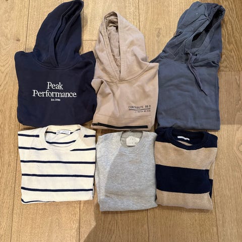 Hollister genseren er litt større en de andre, men gutten min har brukt disse om hverandre.