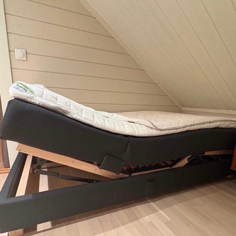 Komfortabel seng med elektrisk justering som gjør det enkelt å heve hode- og fotende. Passer perfekt på soverom, gjesterom eller hybel når du ønsker litt ekstra komfort – til lesing, TV eller hvile.