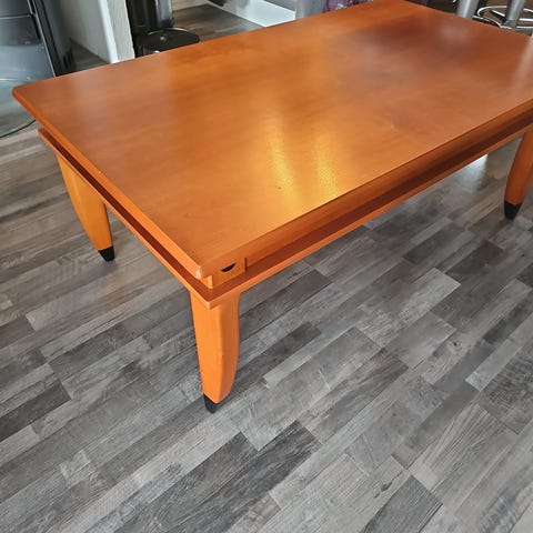 Pent brukt salongbord. Tror bordplaten er i mahogni eller etterligning. Noe usikker. Ingen skader på bordet eller bordbein. Må hentes