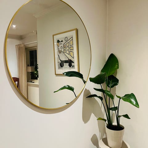 Har også ett rundt speil med gullkant, 85cm i diameter 200kr