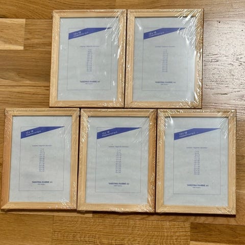 Nye bilderammer, fortsatt pakket i plast. 20x30 cm og 4,5 cm tykke.