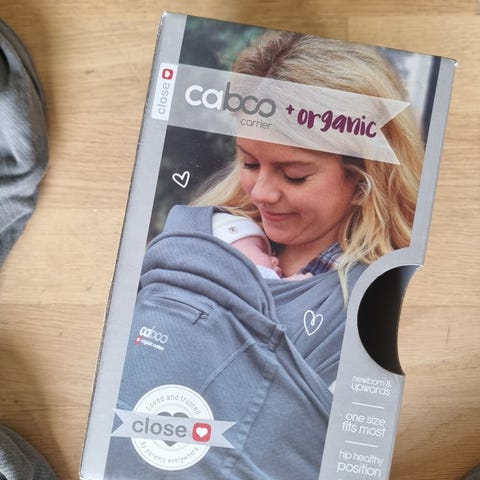 Caboo Organic Care bæresele i grå farge laget av bomull. Designet for å gi støtte og komfort ved bæring av barn. Materialet er mykt.