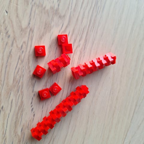 5 stk. Spesielle røde og blå baseplater. 24×24 og 24×32 kun knotter på kantene.