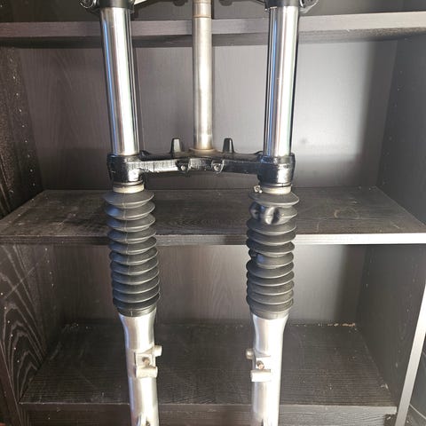 Hei! Selger min originale DNM USD-8 gaffel (luftfjæring med oljedemping, 203mm travel) fra Talaria Sting/MX-serien. Har gått ca. 3000 km på sti og grus, men er generelt i grei stand med litt slitasje på stanchions—ingen lekkasjer eller rare lyder. Funkerer, men oppgraderer nå til Factory Fork 2.0 for stivere kjøring. Så selger den!