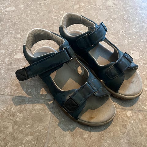 Barnesandaler i størrelse 33. Sandalene har svart farge og to justerbare remmer med spenner. Sålen er formet for komfort og støtte.