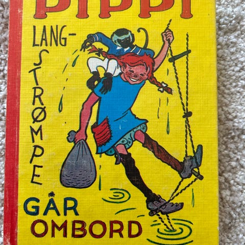 Pippi Langstrømpe 2 stk bøker. Pippi Langstrømpe og Pippi Langstrømpe går om bord. Selges samlet. Den ene boken er skrevet uten på og en merke inne i boken se de siste bildene.