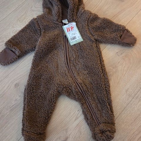 Two teddysuits for baby. Perfect in carrier bag in winter into spring. Both have hands that fold over. Pink one is footed and beige one has feet that fold over.