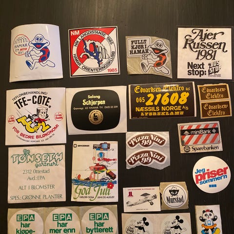 Selger gamle stickers fra 70 tallet. De fleste i tøy, men et par med klister . Kom med bud. Da jeg ikke vet hva de er verdt.