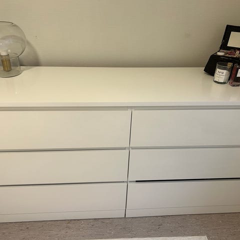 Kommode fra IKEA. Den har skruehull i den ene siden, se bilde.