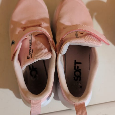 Nike joggesko for jente i størrelse 36. Skoene er rosa med hvit og grå såle. Laget av pustende materiale, egnet for daglig bruk og fritidsaktiviteter.