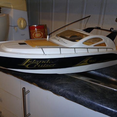 Europa Sprint modellbåt i fjernstyrt utgave. Båten har en hvit og blå fargekombinasjon med detaljert design. Inkluderer fjernkontroll med to joysticker for styring. Passer til modellbåt-entusiaster og samlere. Inkludert også Multilader 6E fra Graupner som lader både fjernkontrollbatteriet og båtbatteriet. Roret trenger litt justering, ellers i stand. Batteriet i båten må sannsynligvis erstattes.