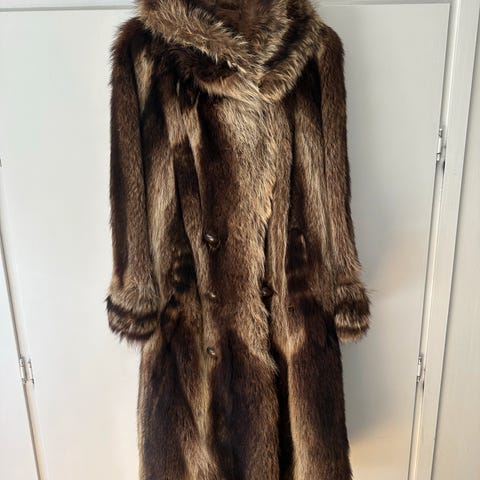 Pelskåpe / Skinnkåpe helrykket vaskebjørn. Str. M/L