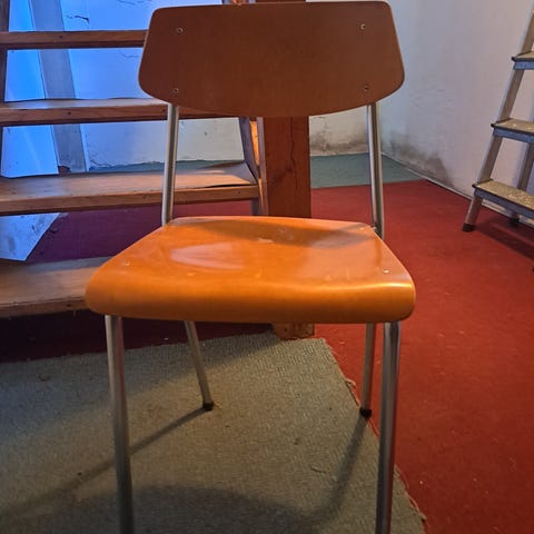 2 stk retro stoler selges. Vet ikke akkurat alder, men tror de er fra 50- 60-tallet. Setet og bena er heltre, mens ryggstøtten er finèr. Selges samlet for 400 eller 250 pr stk.
