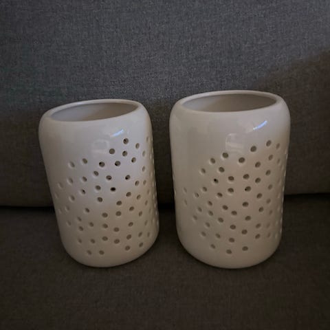 Lite pengetre i god stand. Det er et par tyggemerker fra katt, som også er grunnen til at den bør reddes ut av huset. 😅 Potteskjuleren følger med hvis ønskelig.