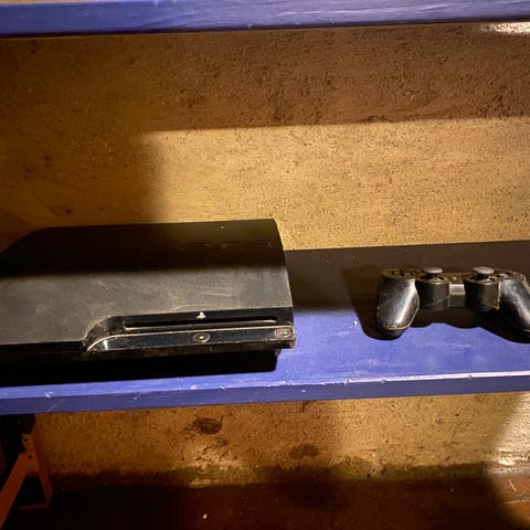 Lite brukt PS3 med tilkoblinger for HDMI og AV-kabler. Inkluderer trådløs kontroller, AV-kabel og strømledning. Alt er testet og fungerer fint.