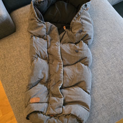 Voksi vognpose for vinter-halvåret. Del som forlenger posen følger med. Brukt av 3barn. Vasket.