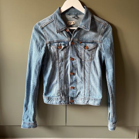 Hvit denimjakke med fine detaljer.