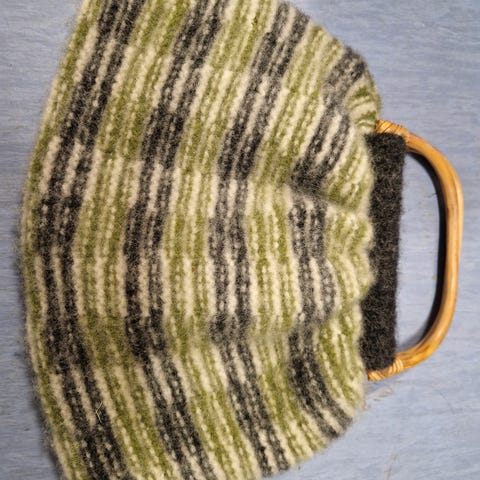 Praktisk veske til strikketøy. Er noen flekker nederst, ikke forsøkt vasket