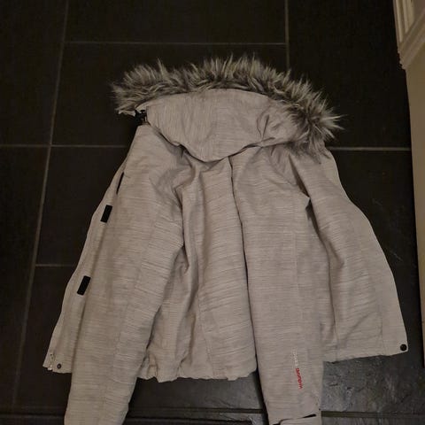Sort semsket skinnjakke med pels inni. Str 40. På den ene lommen er det et hull i foret, som lett sikkert kan sys!