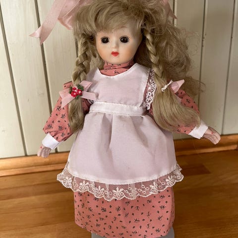 Hodet har vært av denne dukken og jeg har bare dyttet det på plass, så mulig hun trenger en vask og litt kjærlighet. Sløret og håret må også fikses, alt i alt en veldig søt dukke 💖