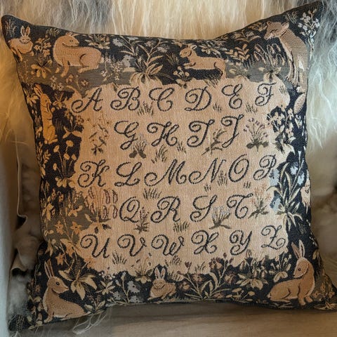 Herlig putetrekk som er vevd av franske Tissage Art de Lys. Det er vevd jacquard-stoff. Motivet er kjente Frida Kahloo. Det er ikke lett å få gjengitt på bilder, men det er vevd inn gulltråd og det glinser litt i gull i motivet. Svært dekorativt. Og en detaljerikt og flott vevd putetrekk - som alt som Art de Lys leverer.